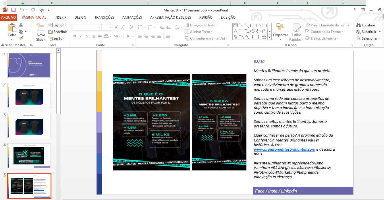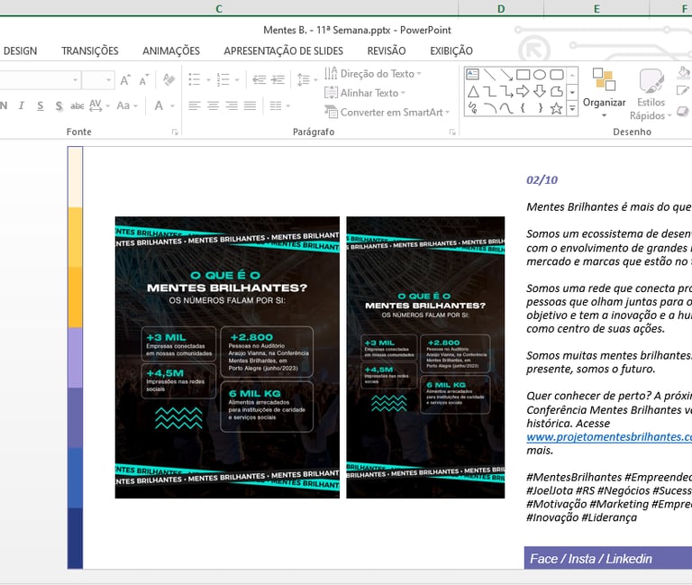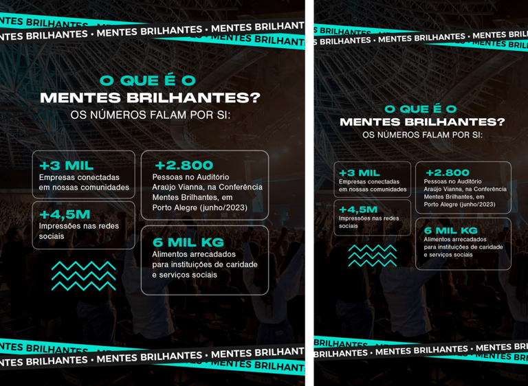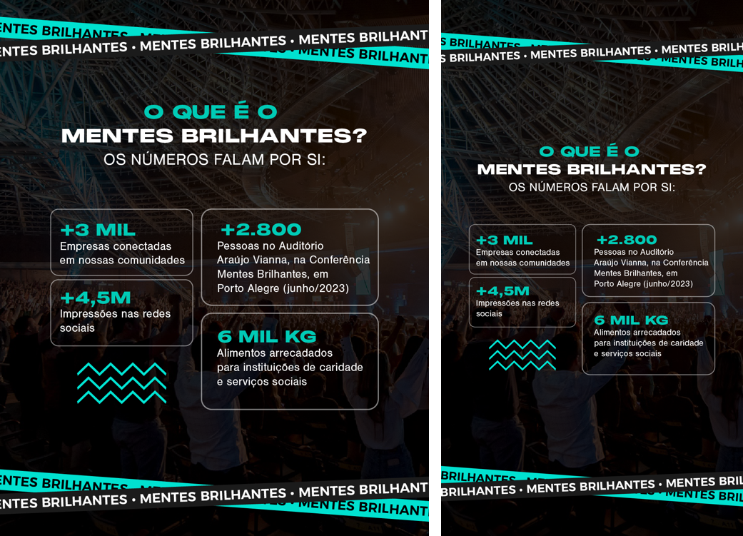Led rebranding, marketing strategy, and cross-channel content execution for Mentes Brilhantes, the biggest entrepreneurship event in Southern Brazil, attracting 3,500 attendees and generating over 4.7 million impressions.